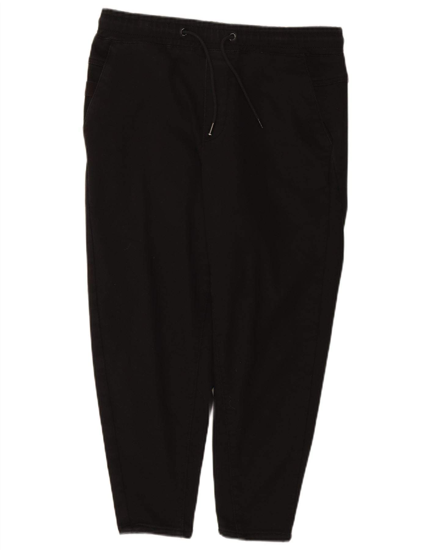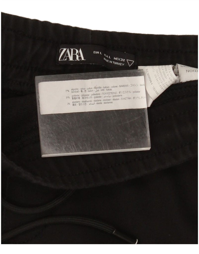 ZARA Womens High Waist Slim Cropped Trousers Large W32 L23 Black Cotton