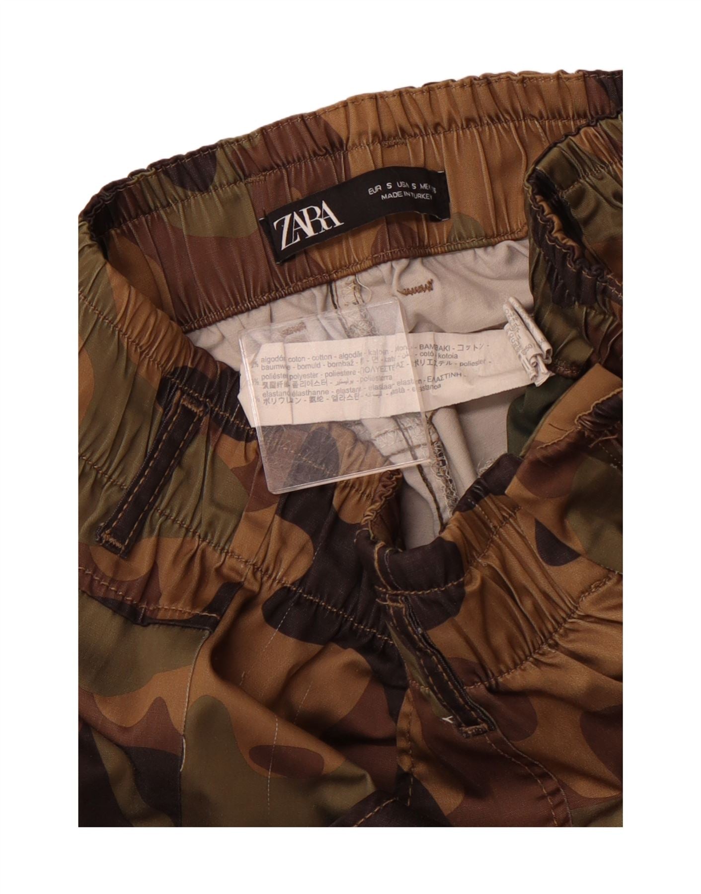 ZARA Womens Joggers Cargo Trousers Small W26 L26 Khaki Camouflage Cotton