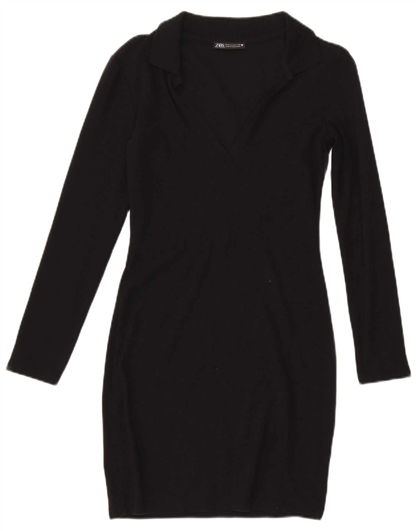 Damska sukienka polo z długim rękawem ZARA UK 12, średnia czarna bawełna