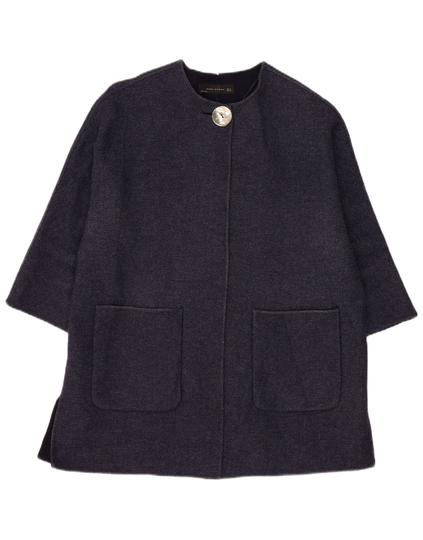 Damski płaszcz oversize z rękawem 3/4 ZARA UK 10, mały, granatowy, wełniany