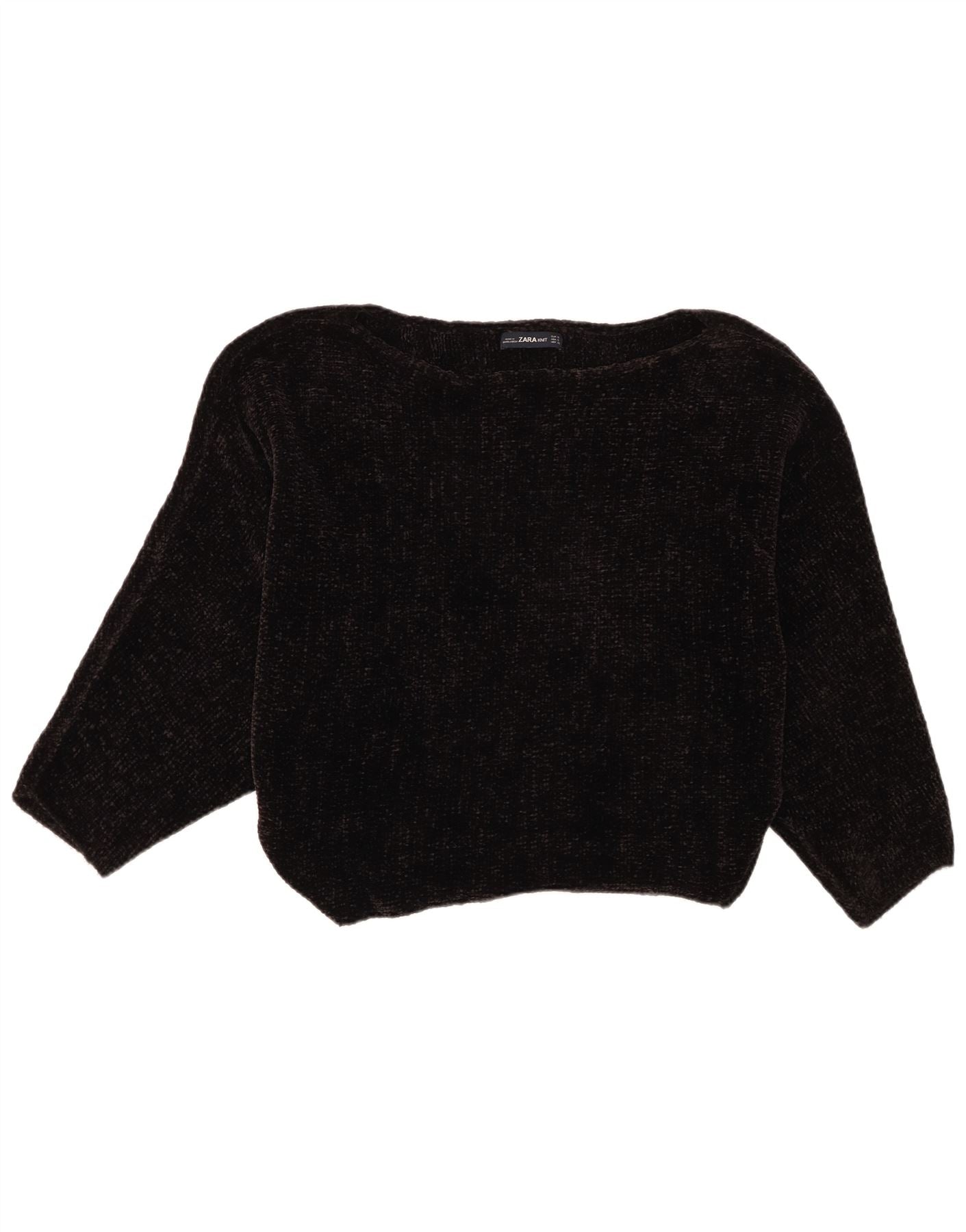 - Opis sztucznej inteligencji: Damski sweter Zara z dekoltem w łódkę jest wykonany z miękkiej czarnej dzianiny poliestrowej, która ma miękką, przypominającą polar teksturę. Ma wygodny dekolt w łódkę i luźny krój. Rękawy o długości 3/4 zapewniają nowoczesną sylwetkę. Ten styl pulowera ma współczesną, przyciętą długość. Prosta konstrukcja podkreśla wygodę i wszechstronność w codziennym noszeniu.