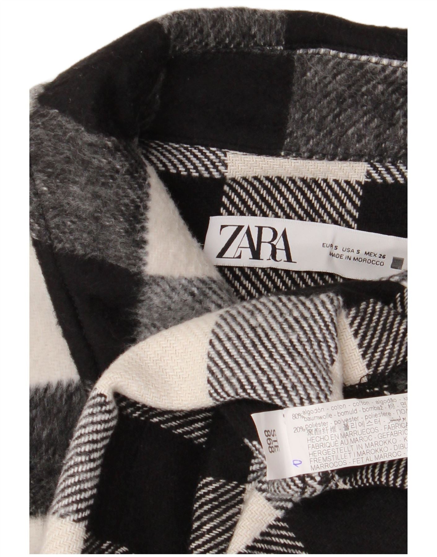 - Opis sztucznej inteligencji: Ta damska kurtka Zara jest wykonana z miękkiej mieszanki bawełnianej o przytulnej teksturze sherpy. Charakteryzuje się odważnym czarno-białym wzorem w kratę. Dekolt z kołnierzykiem i zapięcie na guziki z przodu oferują klasyczne detale. Ma luźny, luźny krój i nowoczesną, skróconą długość. Długie rękawy i przednie kieszenie uzupełniają projekt, zapewniając zarówno styl, jak i praktyczność.