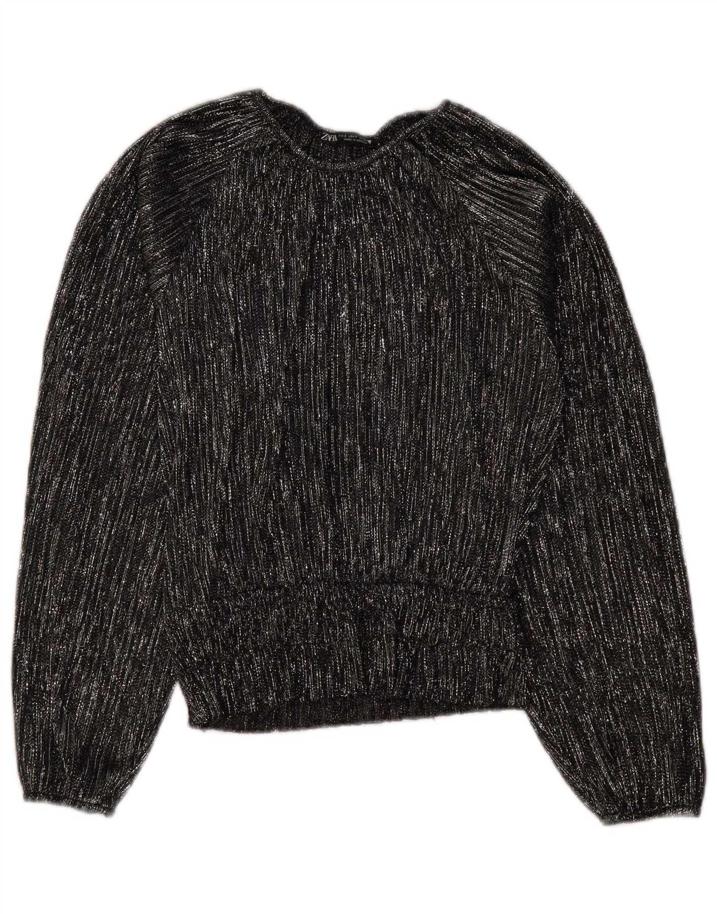 - Opis sztucznej inteligencji: Ten damski sweter z okrągłym dekoltem Zara jest wykonany z lekkiej czarnej dzianiny. Posiada efektowny brokatowy akcent, tworzący subtelny wzór w paski. Materiał zapewnia wygodę i rozciągliwość, a podszewka zapewnia ciepło. Ma luźny, skrócony krój z klasycznym okrągłym dekoltem. Długie rękawy uzupełniają nowoczesną sylwetkę pulowera, dzięki czemu jest to uniwersalny i stylowy wybór.