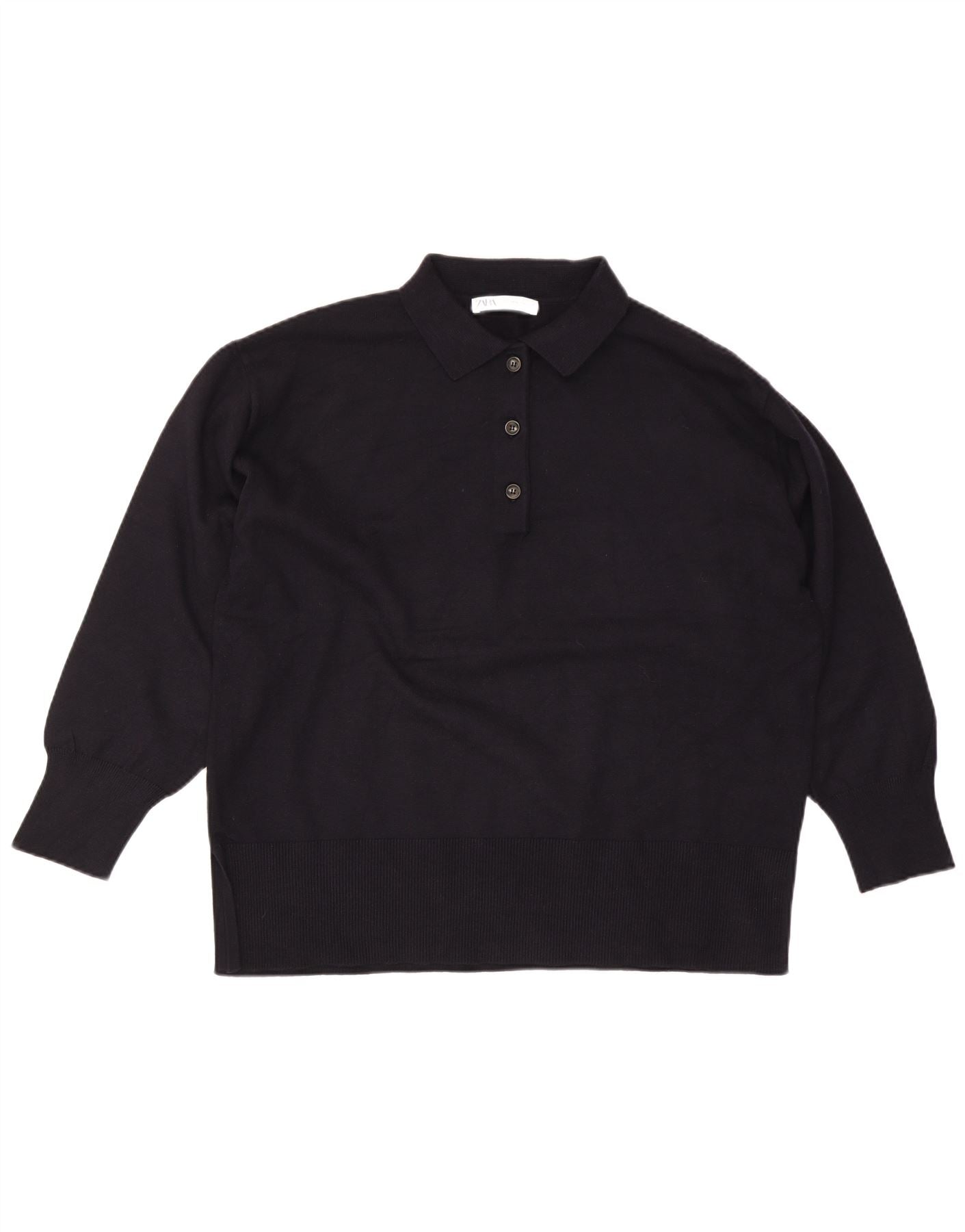 Damski sweter oversize Zara z golfem UK 14, średni granatowy