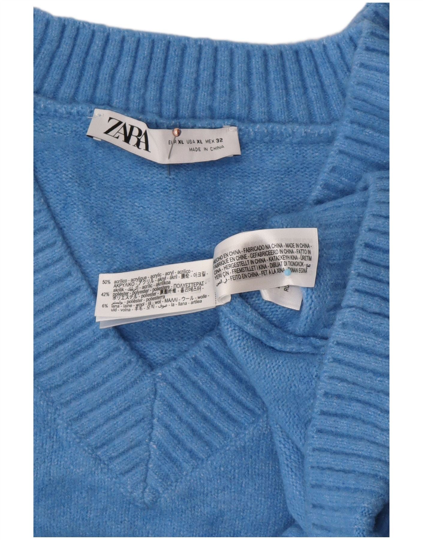 Damski sweter oversize ZARA z dekoltem w kształcie litery V, UK 18 XL, niebieski akryl