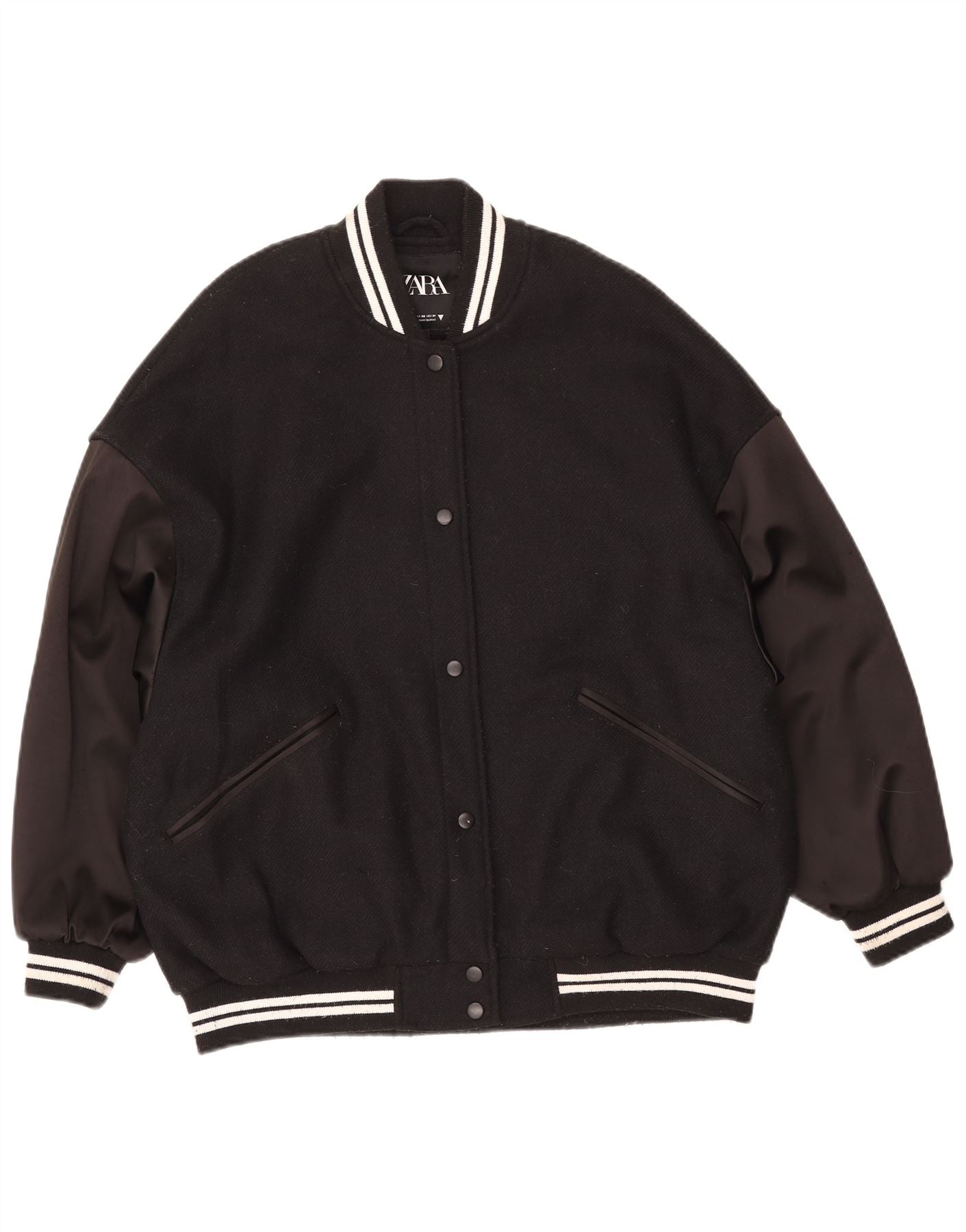 Damska kurtka typu oversize Varsity ZARA UK 6 XS, czarna, wełniana w bloki kolorów