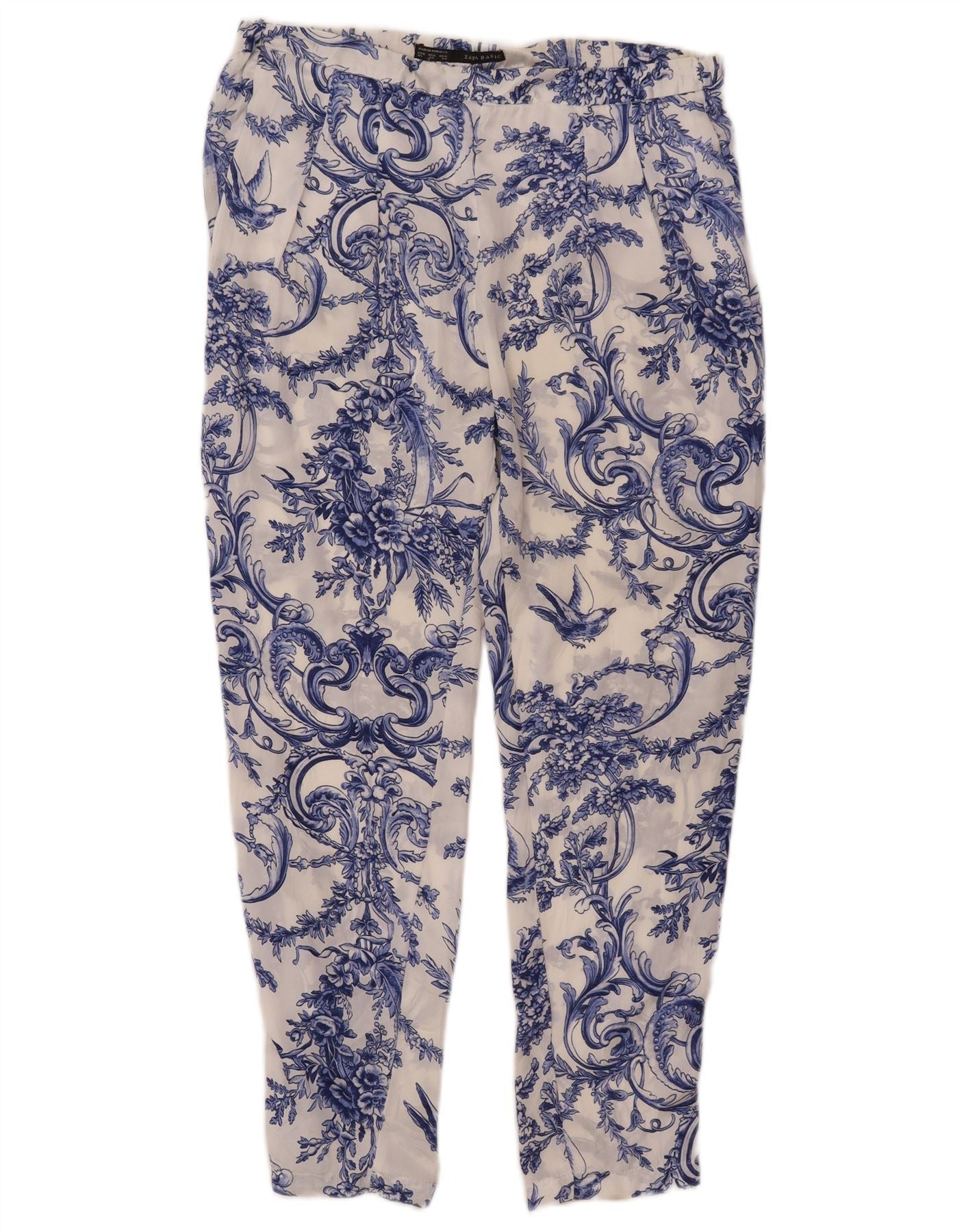 Damskie, przycięte spodnie ZARA XS W30 L25 Białe kwiaty