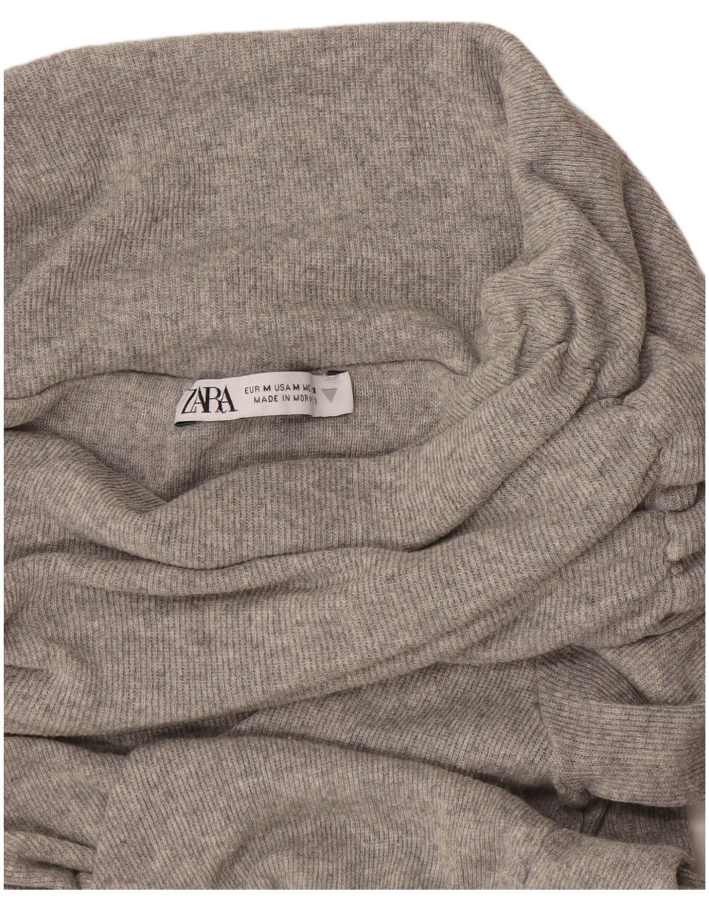 Damski top Zara z okrągłym dekoltem i długim rękawem, UK 12, średnioszary, nakrapiany