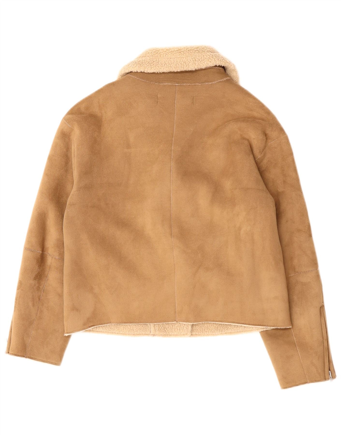 Damska kurtka motocyklowa Zara Sherpa ze sztucznego zamszu UK 10, mała, beżowa, poliester