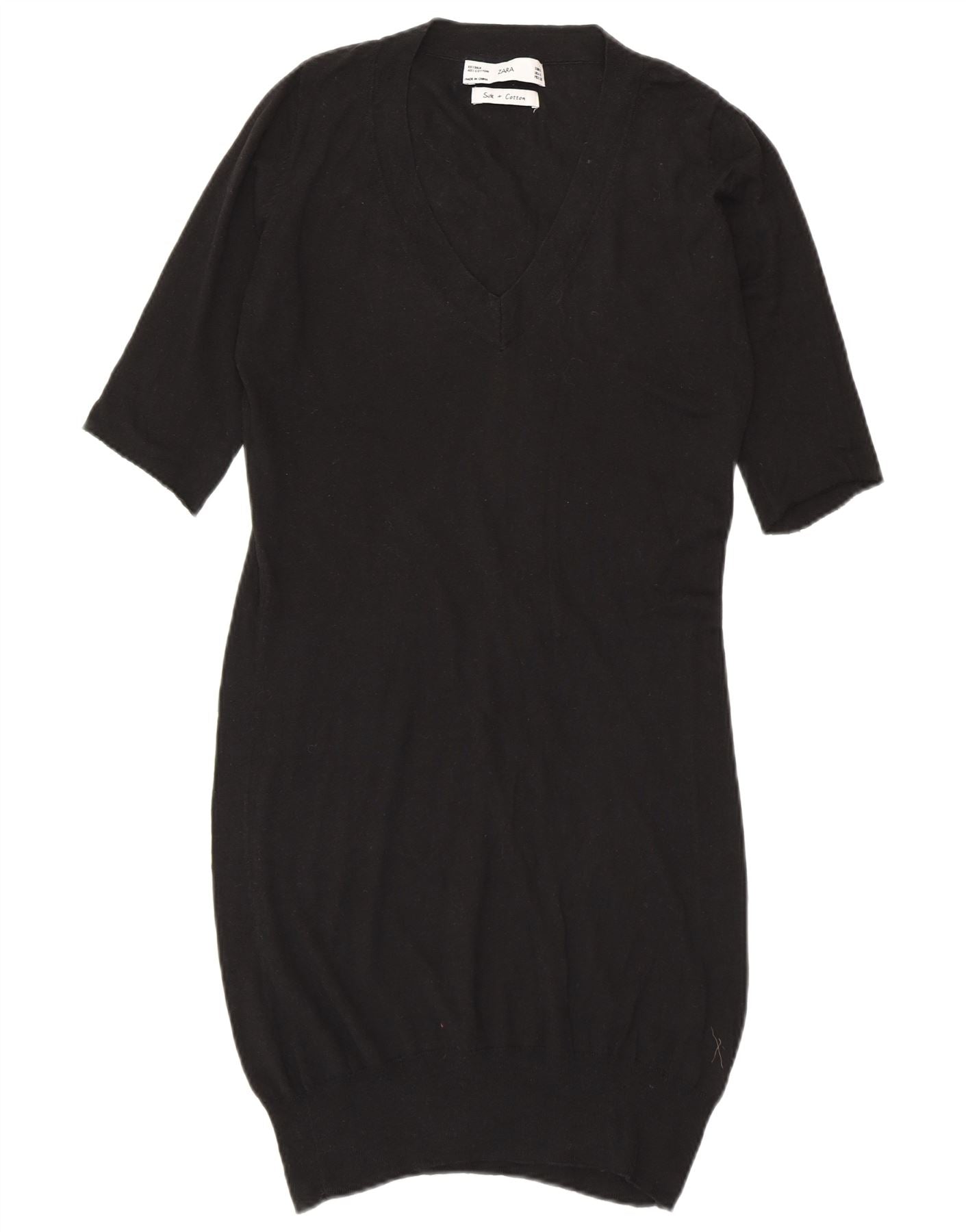 Damska sukienka sweterkowa ZARA z krótkim rękawem UK 10, mała, czarna, jedwabna