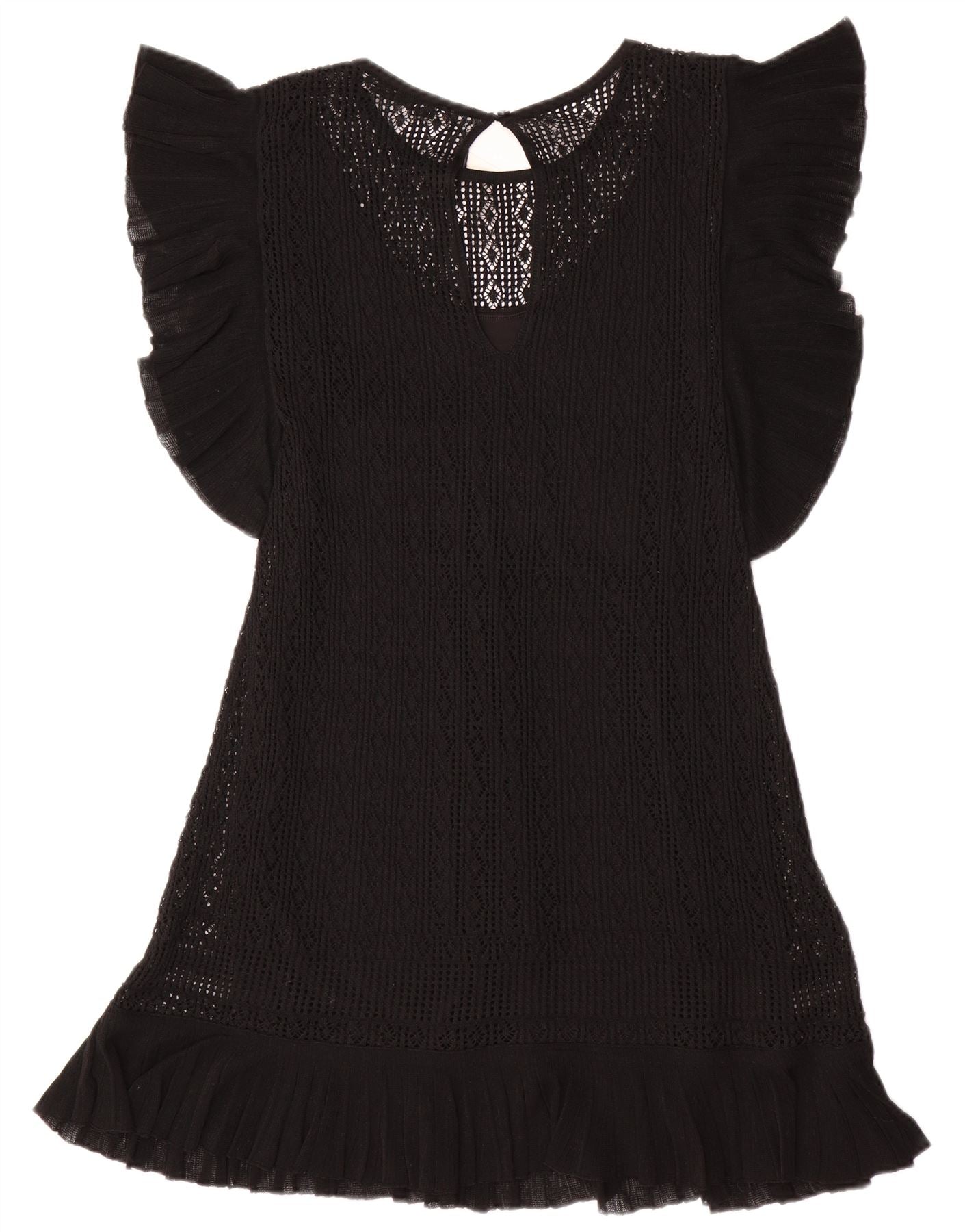 Damska sukienka sweterkowa ZARA z krótkim rękawem UK 12, średni czarny poliester