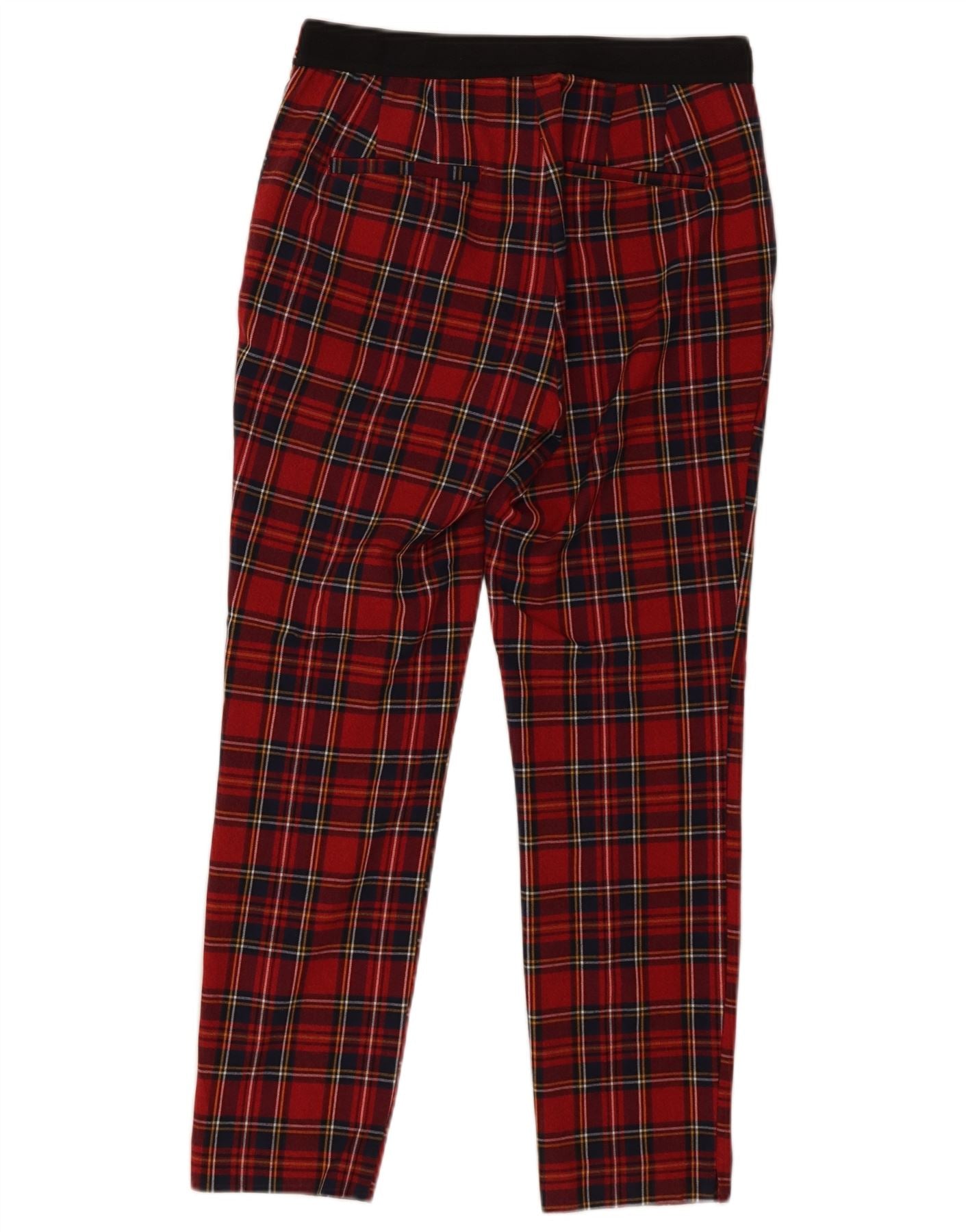 Spodnie damskie Zara Skinny Chino, średnie W28 L26, poliester w czerwoną kratę