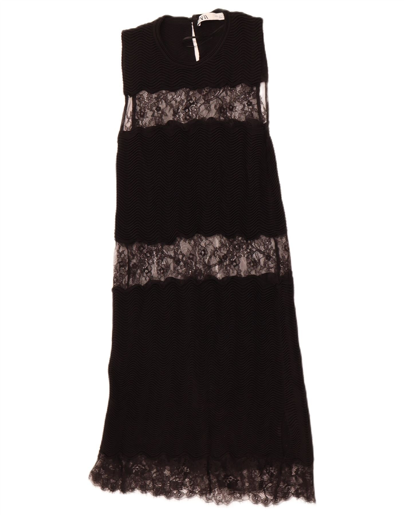 Damska koronkowa sukienka maxi bez rękawów ZARA UK 8 Small, czarna wiskoza