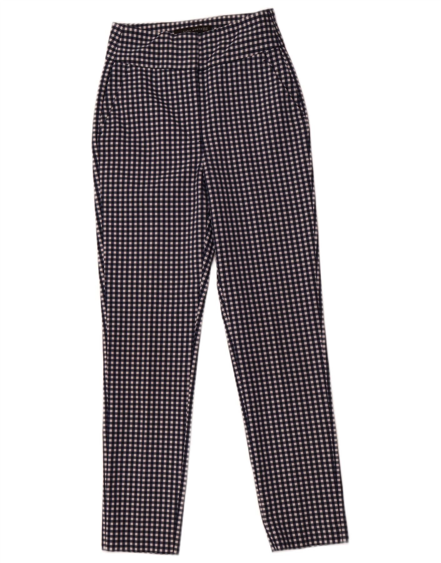 Zwężane spodnie chino damskie ZARA EU 34 2XS W24 L28 granatowe w kratkę