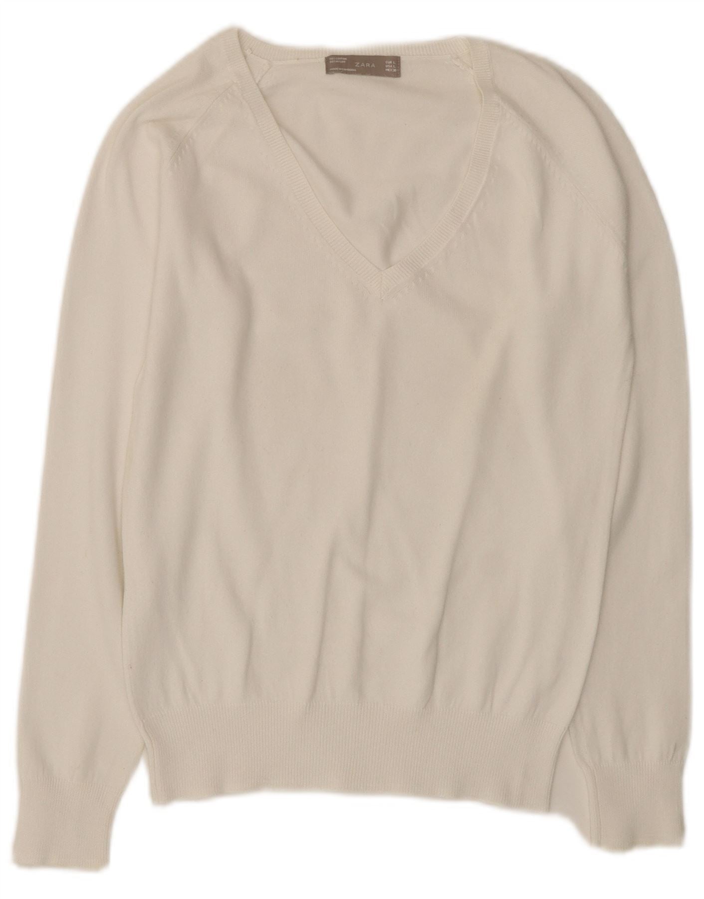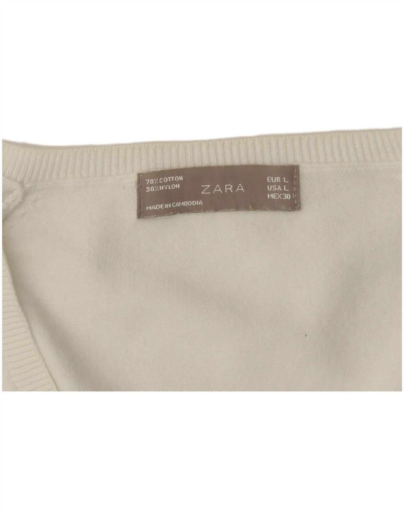 Sweter damski ZARA z dekoltem w kształcie litery V, UK 14, duży, biały