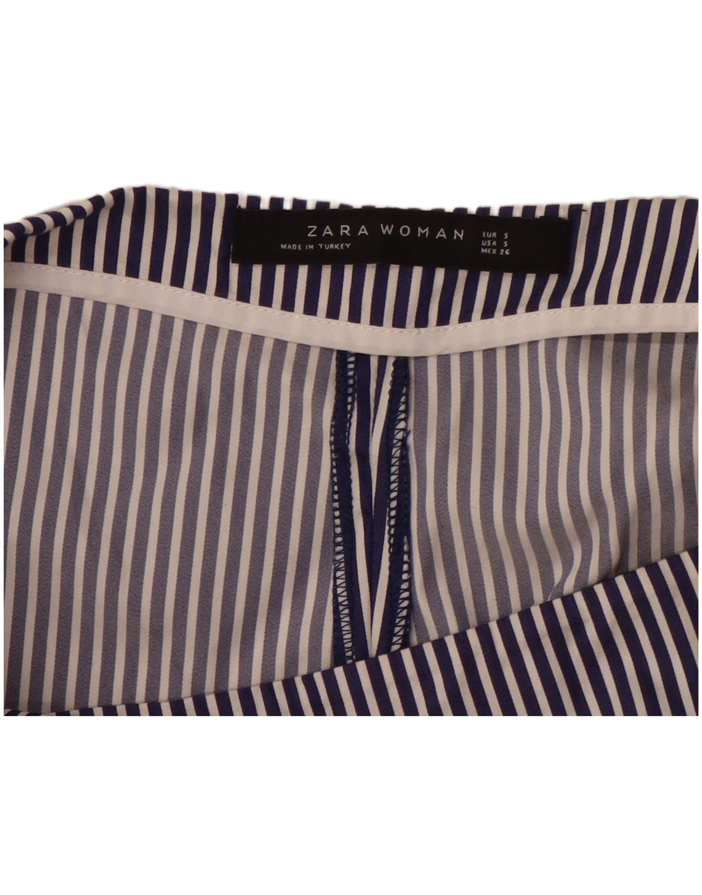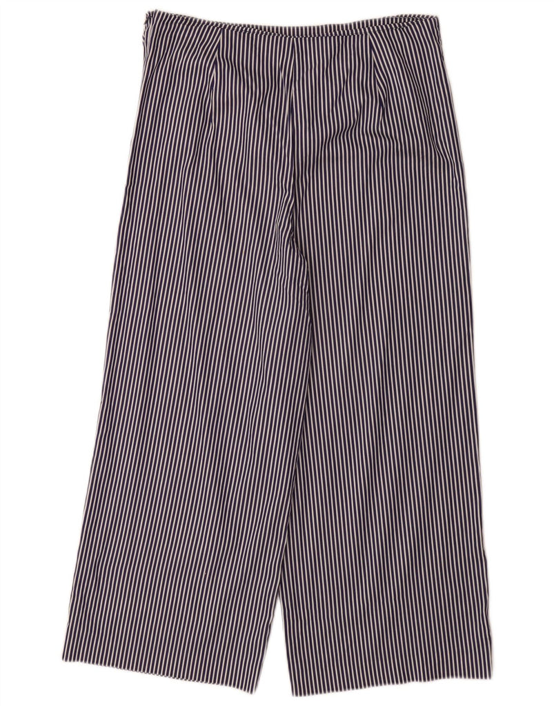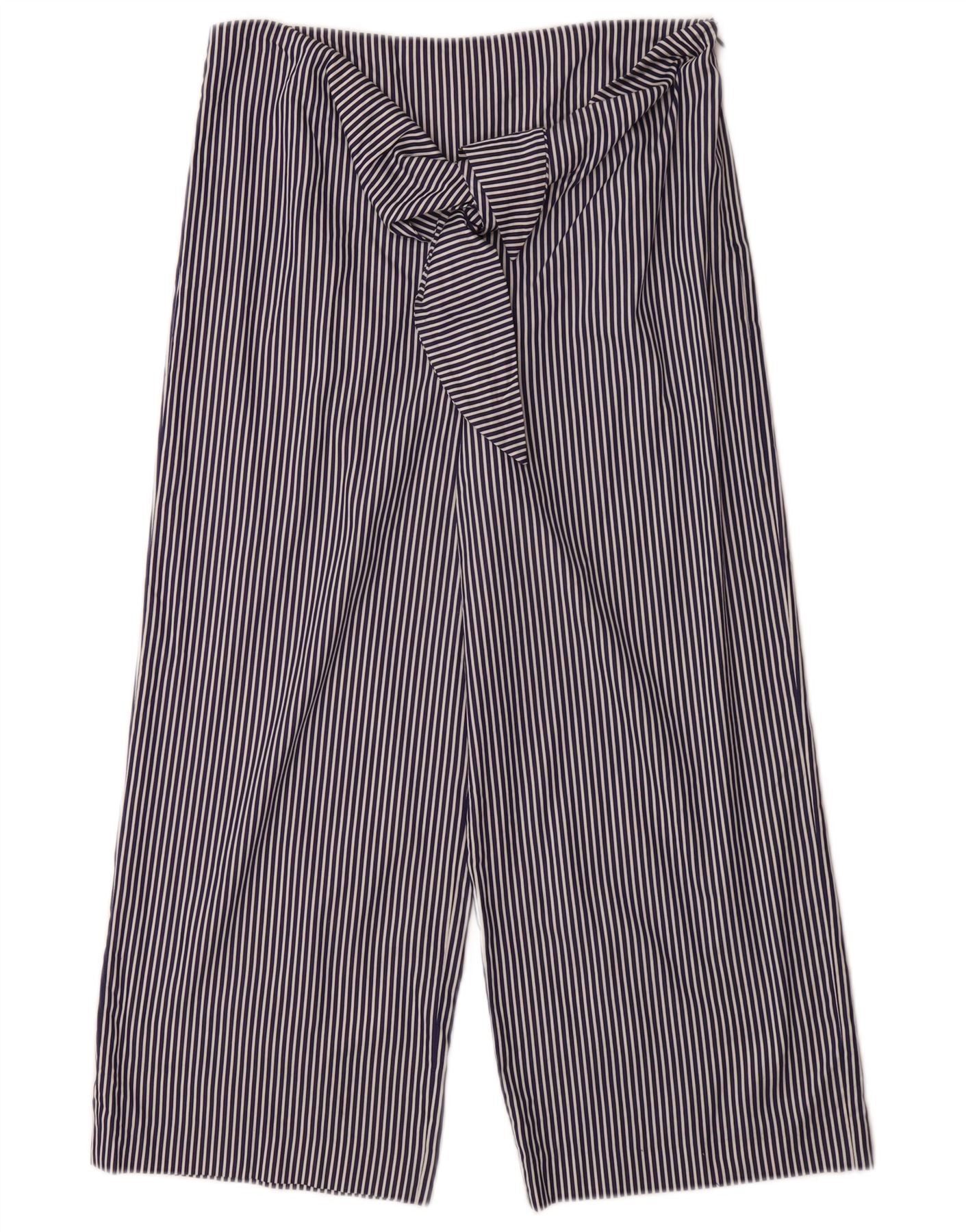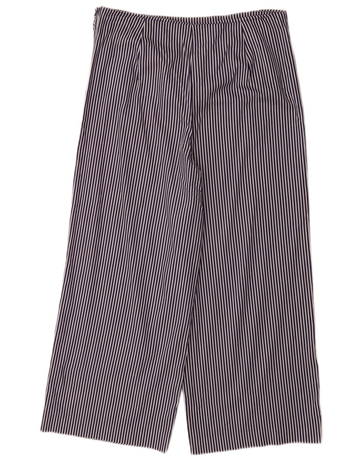 ZARA Womens Wide Leg Capri Trousers Small W26 L23 Navy Blue Pinstripe